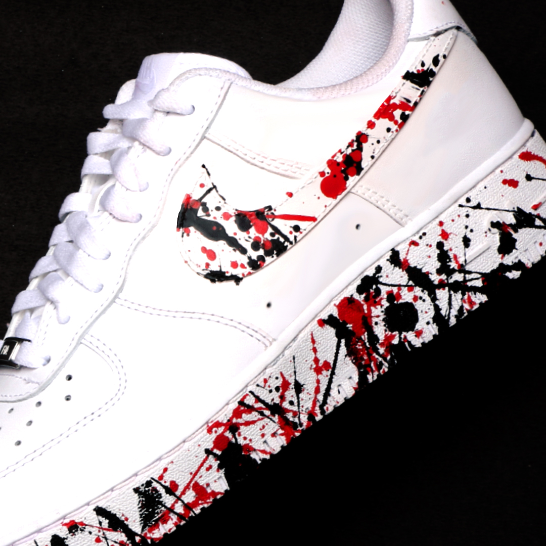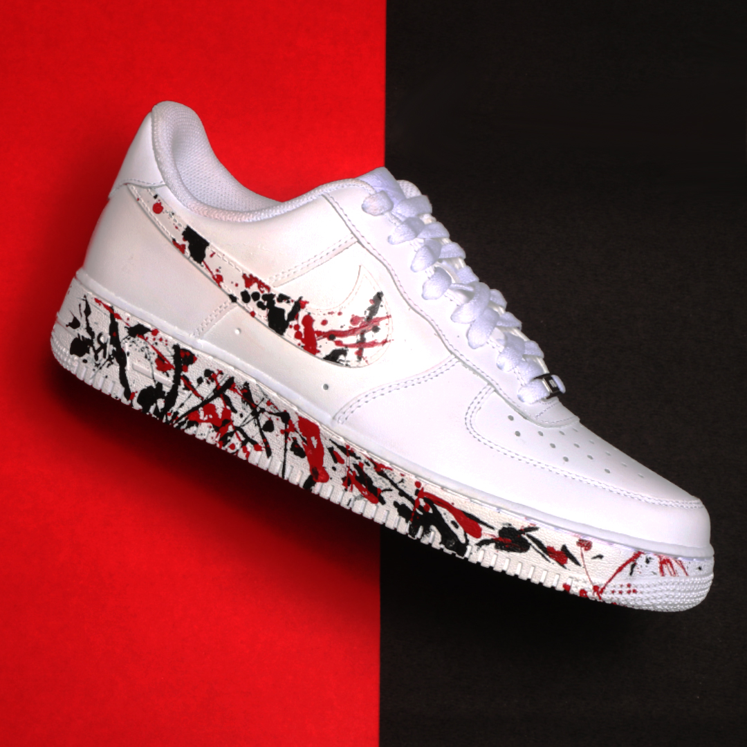 Inferno Ink is a rebellious reimagining of the iconic Air Force 1 silhouette — transformed through bold hand-painted splashes of crimson red and jet black. The sole and Swoosh are ignited with an abstract flurry of strokes, giving the sneaker a raw, expressive energy that blurs the line between streetwear and modern art.