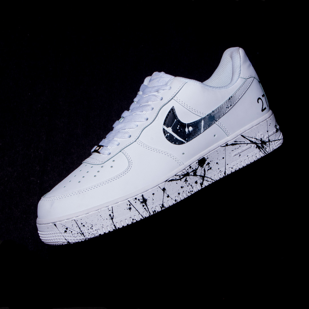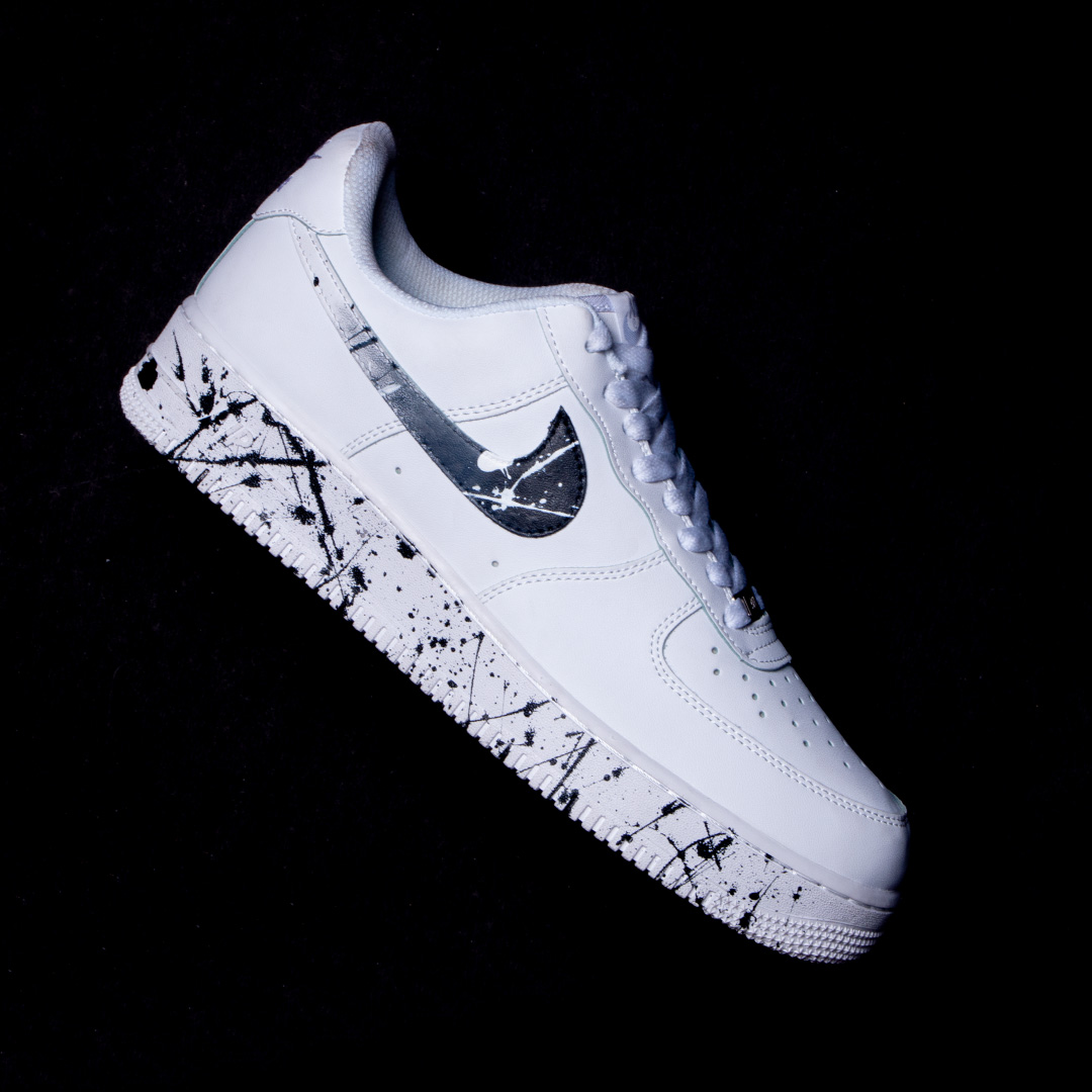 The Monochrome Splash custom AF1 features hand-painted black and white splatter details across the sole and swoosh. Set on a crisp white leather base, this design adds just the right amount of edge without overdoing it. It’s sharp, simple, and impossible to ignore.